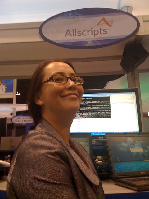In the meantime here is a shot of Alesha at the Allscripts booth at the interoperability showcase.